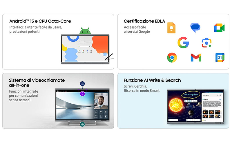 Erleben Sie intuitive, schnelle und reibungslose Performance mit AndroidTM 15 und Octa-Core CPU. Im Klassenzimmer oder Besprechungsraum haben Sie einfachen Zugriff auf Lerntools, Apps und Multitasking-Funktionen.