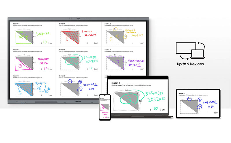 Die WAFX-P-Serie unterstützt das Spiegeln von Bildschirmen auf bis zu neun Geräten, um die Schüler noch mehr in den Mittelpunkt zu stellen. Diese Funktion fördert die Inklusion und sorgt für das Engagement aller Schüler, sodass Inhalte sowohl auf dem größeren Bildschirm als auch auf den einzelnen Geräten geteilt werden können. Diese Funktion ist für iOS-, Mac-, Windows-, Android- oder Chrome-Betriebssysteme verfügbar.