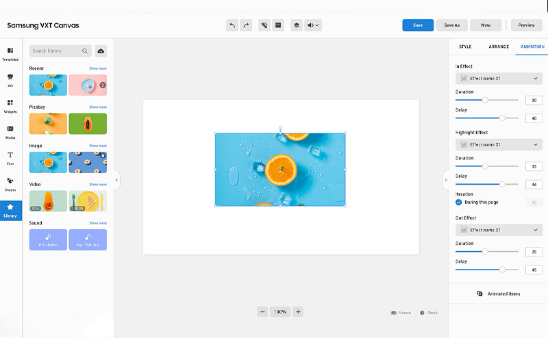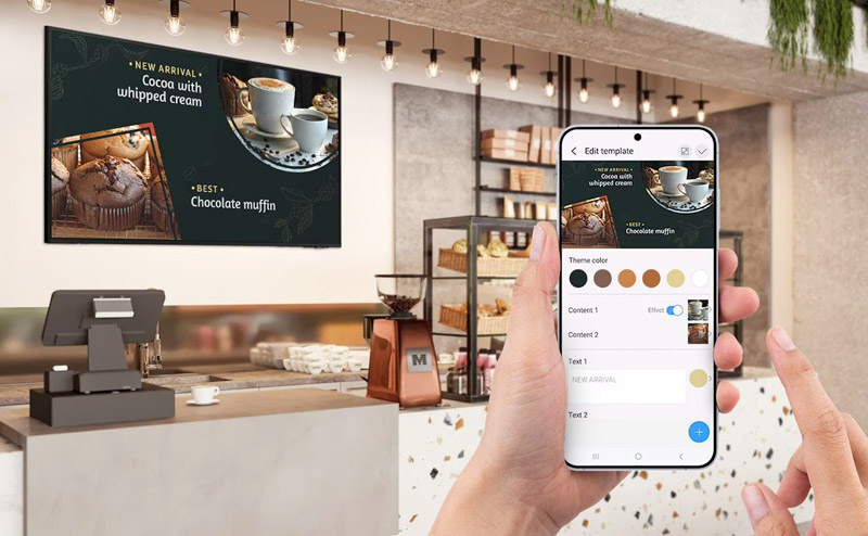 Available on Android or iOS mobile devices, the Samsung Business TV application allows users to manage, program and view personalized content remotely without any effort. Additionally, users can easily create engaging content using a series of ready-made templates.