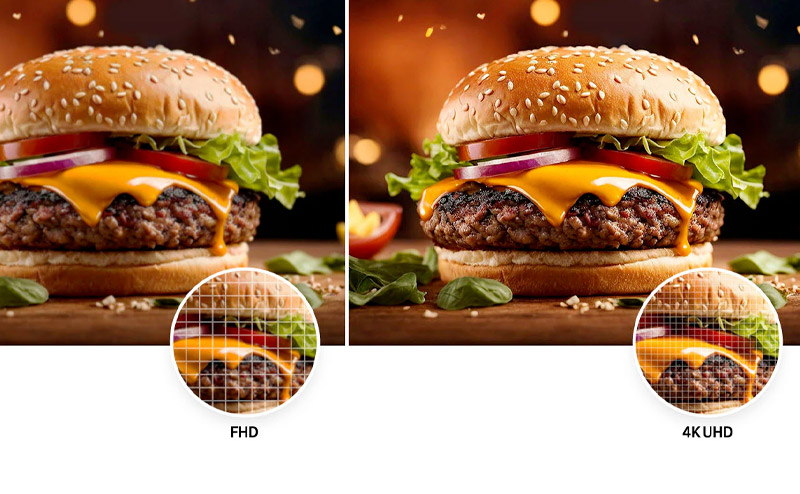 Capture every little detail in every image. 4K UHD resolution has 4 times the number of pixels than normal FHD resolution, to reproduce sharp and incredibly realistic images.