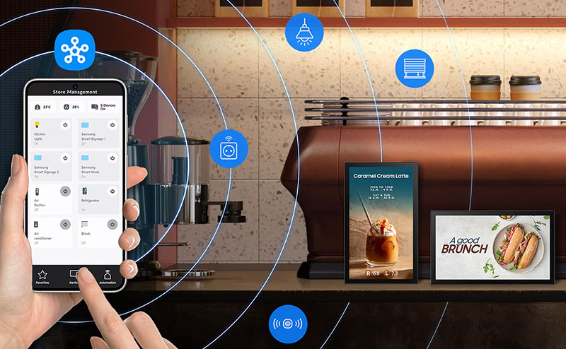 SmartThings Pro brings IoT connectivity into Samsung signage, enabling seamless integration with other smart devices across business environments. From lighting and appliances to building systems, signage becomes part of a connected ecosystem—controlled, monitored, and automated through a single platform.